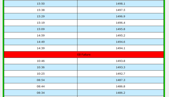 Time wise display of parameters and prominent notification if EB fails