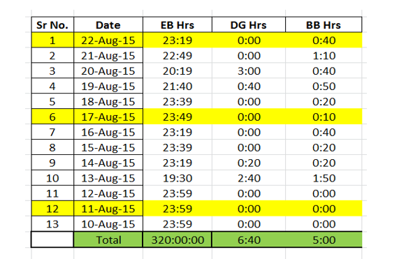 2. How to monitor the Hours run of EB ( Electricity Board ) supply ?